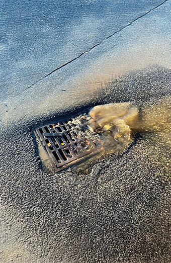 Immediate attention to surcharge pits backing up or flooding under pressure during heavy rainfall events.